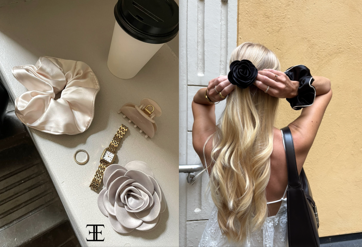 Blommor för oss ger en romantisk och lekfull känsla när de pryder håret vid speciella tillfällen eller för att lyfta en vardaglig look. Att bära blommor i håret har alltid varit en tidlös och vacker trend som är populär i flera olika kulturer i världen, de kan symbolisera känslor, minnen och spegla din personlighet. Vår mest populära Linn flower är vår egna design med en clip och ett kompletterande band i satin för en variant av olika sätt att bära den. Det går bra att fläta in den i håret, bära den runt halsen, midjan eller på väskan.